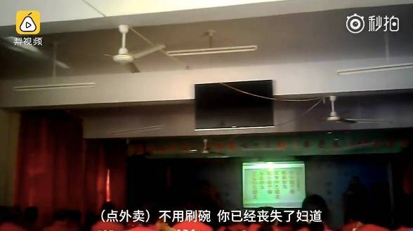据视频显示,“女德班”雷语频出:婚姻四项基本原则是“打不还手、骂不还口、逆来顺受、坚决不离婚”,点外卖不刷碗是丧失妇道,女强人下场都不好……