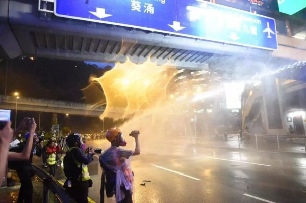 昨天(25日)傍晚,在香港荃湾一带,激进示威者向警方投掷自制汽油弹,警方被迫释放催泪弹。警方首次将水炮车布署在驱散行动中,以水柱驱散示威者,其间更有警察疑似不得以鸣枪示警,欲逼退示威者。