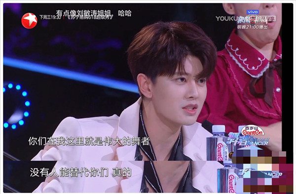图说:舞蹈领队任嘉伦点评两人的表演 官方图