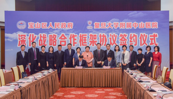 新民晚报讯 (记者 郭剑烽)昨天,宝山区政府与复旦大学附属中山医院举行深化战略合作框架协议签约仪式。根据协议,宝山区委托中山医院全面管理宝山区吴淞中心医院,充分利用中山医院品牌、管理、技术和人才优势,全面提升吴淞中心医院医疗、教学和科研能级,使其成为基础学科较为齐全扎实、特色专科优势较为明显,管理精细、服务优良的区域医疗中心。此次签约是宝山区贯彻落实“健康中国”战略的重要举措,标志着“健康宝山”建设迈出了关键性的一步,对提升宝山公共卫生服务体系整体水平有着重要意义。