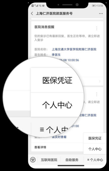 方法一:关注“上海仁济医院就医服务号”【微信公众号】-个人中心-医保凭证