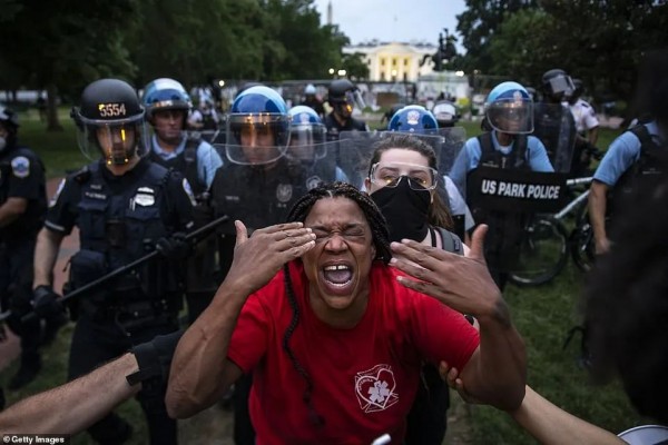 直到当晚11时许,仍有大批示威者聚集在白宫北侧的道路上,警察扩大了封锁范围,隔着路障同示威者对峙。示威者还在白宫外竖起了临时路障,打出了“黑宫自治区”的招牌。就在示威抗议的同时,美国特勤局通知白宫新闻团的成员立即离开白宫。