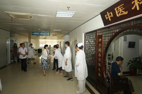 八院党委书记周建元教授(左二)和专家们一起看望本院中医