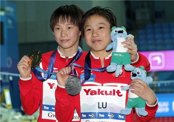 图说:2019年,在韩国光州举行的世锦赛上,陈芋汐(左)与队友卢为包揽冠亚军 网络图