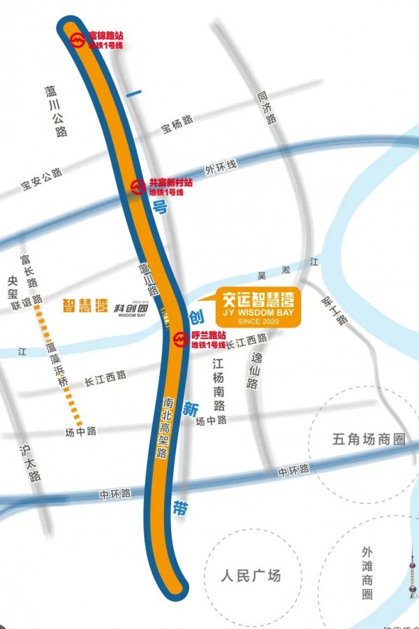 位于共和新路5899号、蕰藻浜南岸的交运智慧湾前身是始建于上世纪的上海市装卸储运总公司码头,随着产业结构调整,老码头闲置、老仓库关闭,七个高达15米的巨大龙门塔吊静静矗立岸边,述说着曾经的辉煌……今年7月1日,1.4公里蕰藻浜庙行区段建成开放,近日跨越共和新路高架东延伸1.2公里张庙区段建成更打开了交运智慧湾亲水岸线。城市更新和滨水公共空间提升改造使这里重新被“唤醒”,进入公众视野。