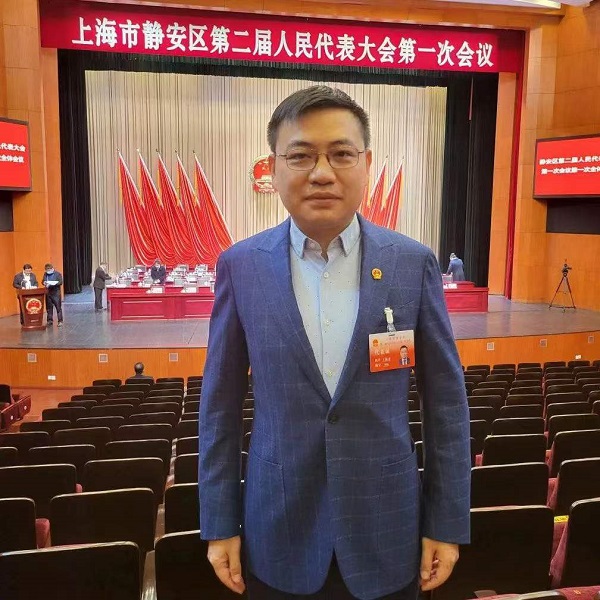 图说:张斌峰代表建议加快推进零星地块的旧改速度。静安区社会组织联合会供图