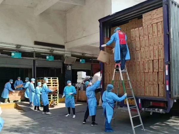 图说:家乐福万里店卸货物资。(万里街道供图,下同)