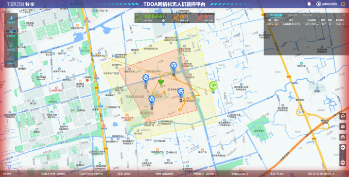 特金TDOA网格化无人机管控系统数据分析界面示意图