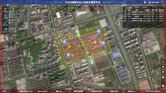 特金TDOA网格化无人机管控系统可同时识别显示多个无人机目标飞行轨迹