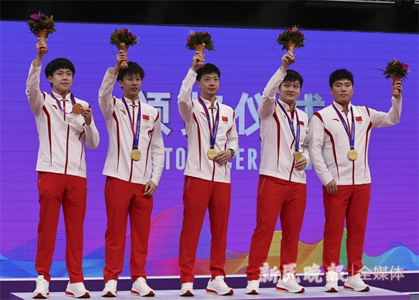 图说:男团夺冠 新民晚报记者 李铭珅 摄(下同)