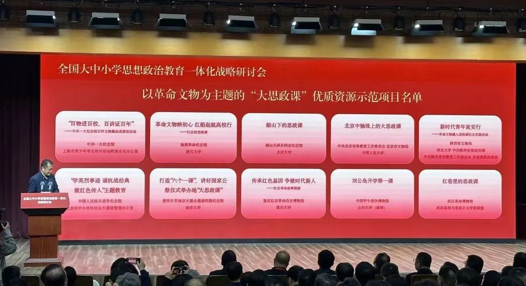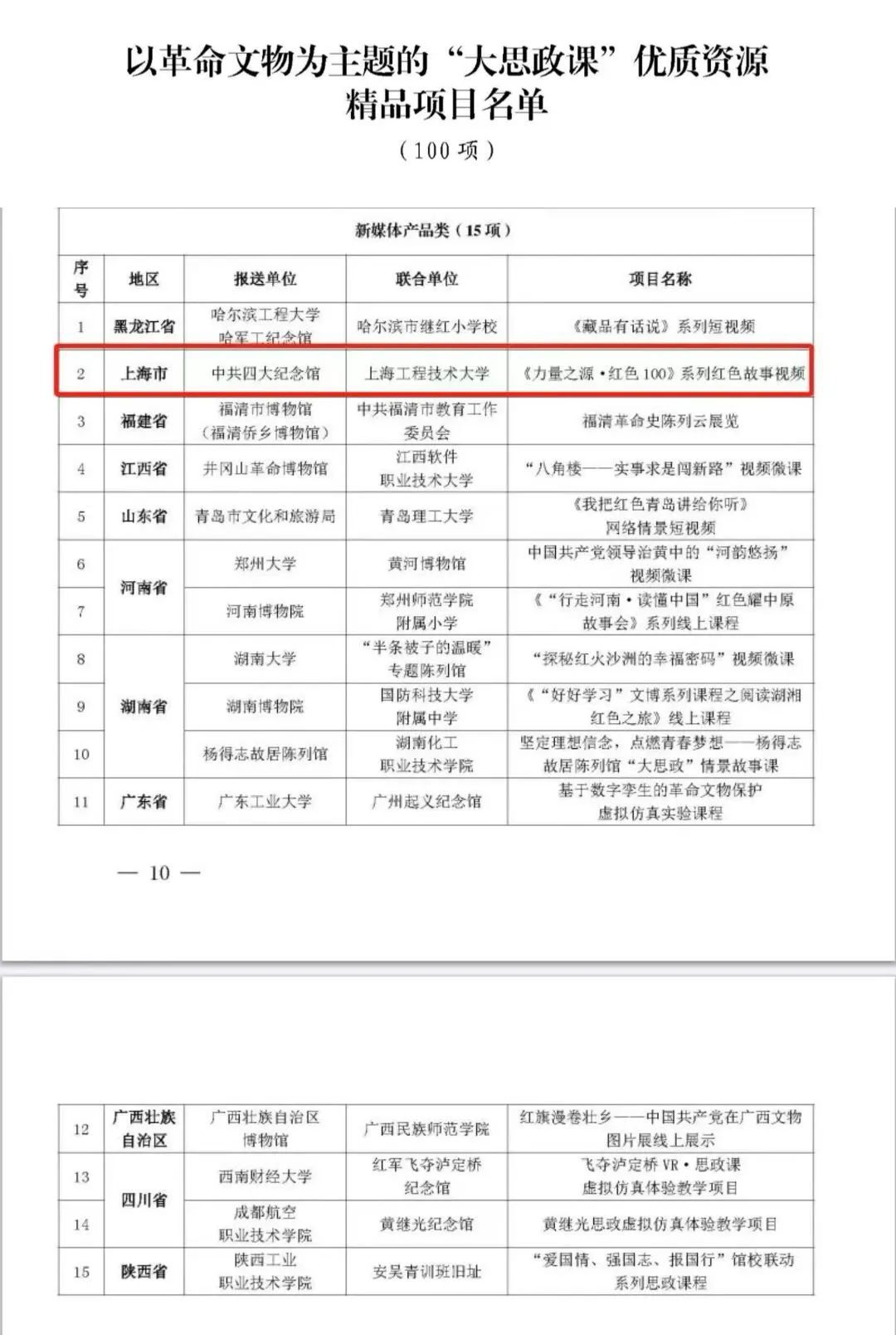 为切实推进“大思政课”建设走深走实,提升育人效果,11月27日,全国大中小学思想政治教育一体化战略研讨会在上海召开。会上,国家文物局、教育部共同发布以革命文物为主题的“大思政课”优质资源项目,公布了10个示范项目、100个精品项目名单。“力量之源 · 红色100”——中共四大纪念馆系列红色故事视频入选精品项目(新媒体产品类)。