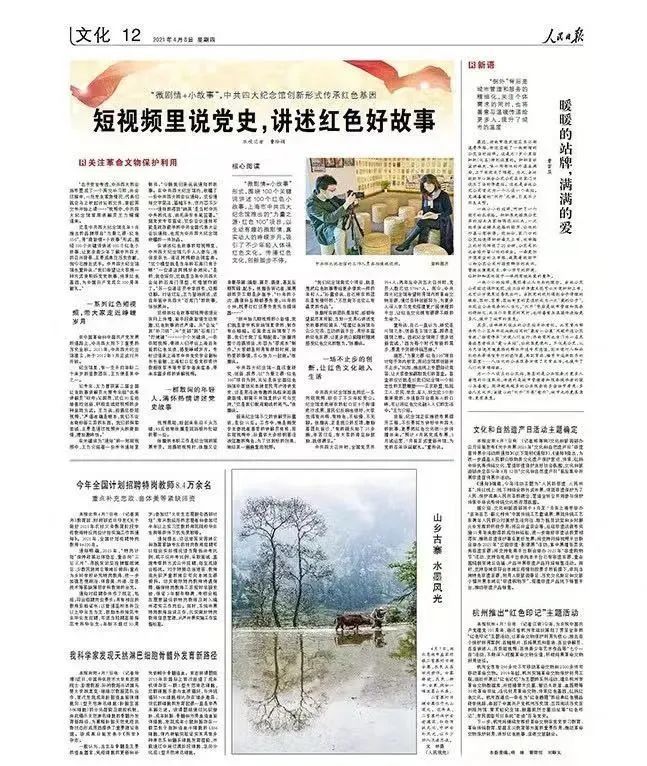 ▲“力量之源·红色100”项目专题报道刊于《人民日报》2021.4.8 第12版。