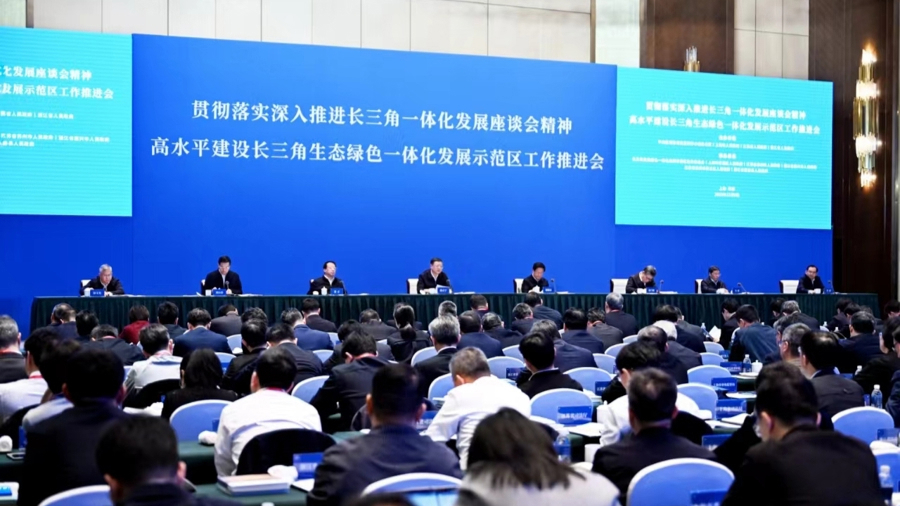 贯彻落实深入推进长三角一体化发展座谈会精神高水平建设长三角生态绿色一体化发展示范区工作推进会今天在上海青浦举行。会议认真学习贯彻习近平总书记在深入推进长三角一体化发展座谈会上的重要讲话和考察上海重要讲话精神,总结工作、部署任务,推动长三角生态绿色一体化发展示范区建设不断走深走实。上海市委书记陈吉宁,国家发展改革委主任郑栅洁出席会议并讲话。上海市委副书记、市长龚正主持会议。