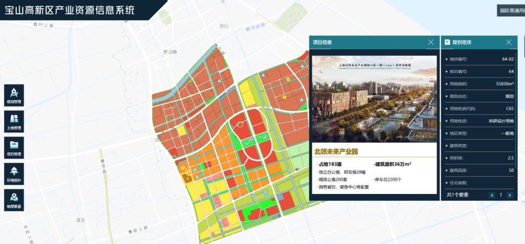 宝山高新区产业资源信息系统(以下简称“系统”),集成了网络技术、数据库和地理信息系统(GIS),是一个高效、综合全面业务数据、资源管理的平台。该系统实现全面数据整合。依托航空影像和政务地图,整合园区地理要素、详细规划、土地管理、环境保护、项目地块、建筑模型等数据,为决策及效率提供坚实基础。支持双端应用,通过电脑端和移动端,实现“一站式”综合展示。实现智慧化与精细化管理,支撑智慧化建设和精细化管理,为智慧园区建设提供技术支持。