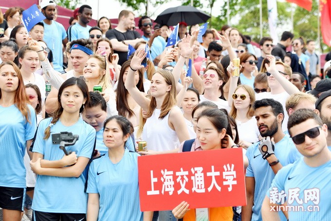 千余名上海高校外国留学生啦啦队们也齐聚华东理工大学通海湖畔,为自己学校的队伍加油鼓劲,共迎端午佳节。