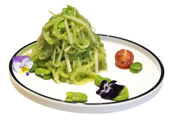 早春三色,由“翠、绿、黄”三色组成,由当季新鲜上市的莴笋、蚕豆、竹笋凉拌而成。春天是莴笋上市的季节,本地产的莴笋色如翡翠,肉质特别细嫩,香味浓郁,莴笋切成丝后用糖、盐腌制后洗净;去壳蚕豆开水煮熟后去除豆皮,用冰水迅速冷却以保留蚕豆的绿色,剥出的蚕豆又绿又圆,吃在嘴里又粉又甜。黄色的代表则是春笋,焯水后切丝,将三者凉拌在一起。莴笋爽脆、蚕豆粉糯、笋丝增鲜,细细咀嚼莴笋有淡淡的回甜,作为一道冷菜,翠绿的色泽和爽口的口感,和春天完美呼应起来。