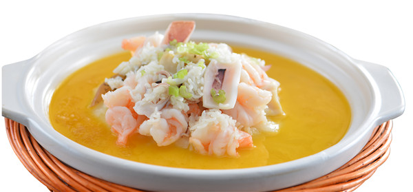 如今一碗诱人的泡饭,当然不能只有大米开水孤军奋战。御璟轩用各色海鲜帮助泡饭完成历史性的蜕变。春天的海鲜特别肥美,御璟轩用大闸蟹熬制蟹油,与大骨高汤共同熬煮,打造了一份色泽金黄的汤底。在汤底中加入了鲍鱼、海参、虾球、带膏的红鱿,做法简单,只为突出食材的本味。一碗脆米和一碗米饭是最佳的比例,切记不能多,两者在油亮金黄的汤色中翻滚,“滋滋滋”的悦耳声变成了最撩人的开胃神器。一颗颗米饭尽情汲取着汤鲜,变得格外饱满,大闸蟹熬制的汤底浓郁鲜甜,鲍鱼弹牙、海参软糯、虾球鱿鱼更是带着淡淡海味,软脆相间的口感在口腔中共谱起了高高低低的旋律。 陈骏