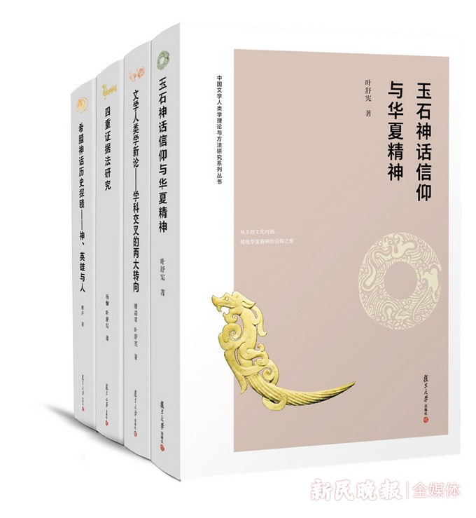 神话学研究院首席专家、上海交通大学资深教授叶舒宪先生的《玉石神话信仰与华夏精神》一书,以九千至一万年的玉文化的大传统为立论基石,通过西部七省区250个县市的调查采样,划定了总面积200万平方公里的“中国西部玉矿资源区”,凭借丰富的田野样本、“接地气”的田野经验,重新建构起玉礼器的神话学,揭示华夏文明的精神和信仰之根,提出“玉文化先统一中国”的独创观点。《文学人类学新论》和《四重证据法研究》的亮点在于理论与个案的完美衔接,整合了文学人类学学科历经三十年提出的一系列原创理论,如“文化符号N级编码”、“神话观念决定论”、“神话中国论”、“四重证据”,充分体现了文学人类学这门在跨学科潮流下诞生的新学科爆发出的强大理论原创力和阐释力。
