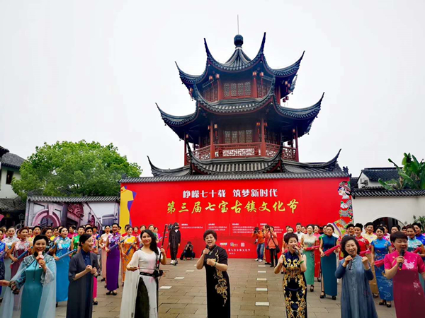 来自七宝的广大旗袍爱好者以及上海海派旗袍文化促进会的姐妹们,通过时下最流行的行为艺术——“快闪”以及别有韵味的旗袍节目、旗袍走秀等,在七宝江南特色的蒲汇塘桥、宋代遗存的古镇老街、现代时尚的七宝宝龙城,让更多市民感受、体验了江南文化、海派文化的柔美灵秀、古典雅致。