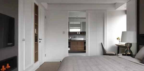担心颜色搭配不好把握,那么白色门+大白墙就是一个比较好的选择,做不到百分百隐形,但是视觉上也达到了一定程度的统一。