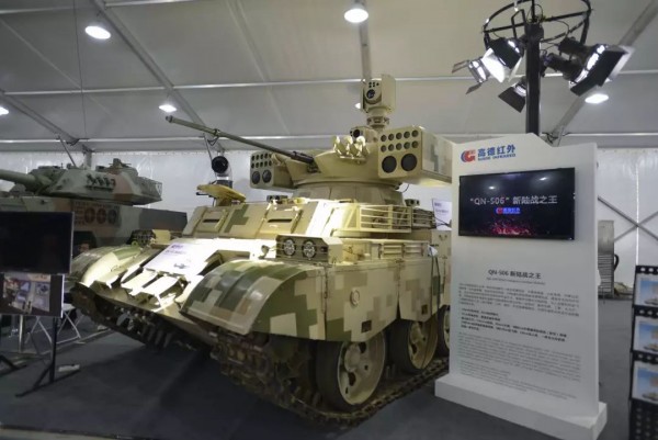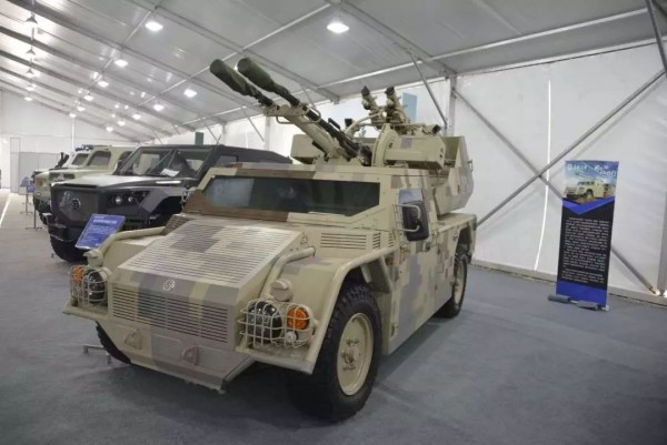 武汉高德红外出品的QN-506多用途察打一体化武器系统,名字有点长,但内涵确实丰富,由底盘、火控系统、升降式光电转塔、综合瞄准镜、驾驶员显控终端、30毫米自动炮塔和两型筒装导弹等组成,简直是“移动火力堡垒”,公关人员干脆称其为“新陆战之王”。
