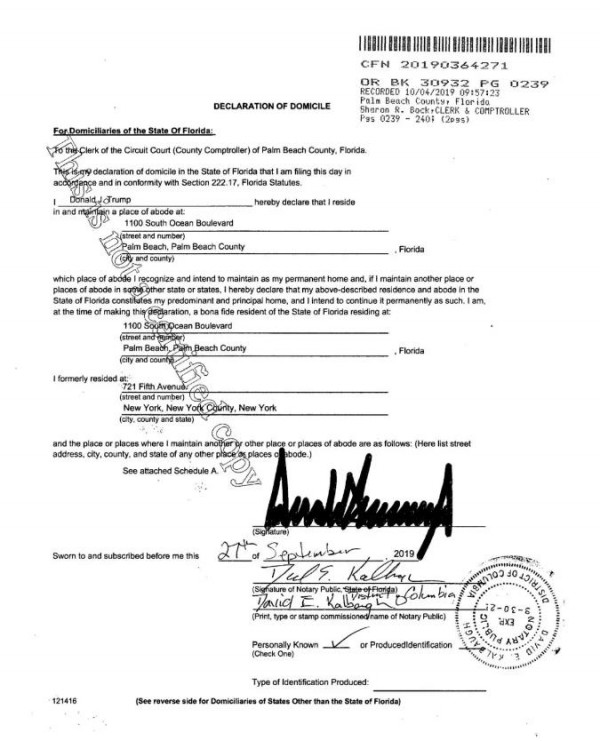 当然,“改户口”只是一种比喻。真实的情况是,特朗普宣布把自己的常住地址从纽约曼哈顿迁往佛罗里达州的棕榈滩。根据美国媒体的挖掘,特朗普和“第一夫人”梅拉尼娅在9月就正式向棕榈滩巡回法庭提交了“个人税收居民身份声明文件”,称位于佛罗里达州棕榈滩的海湖庄园将是他们的常住地址。