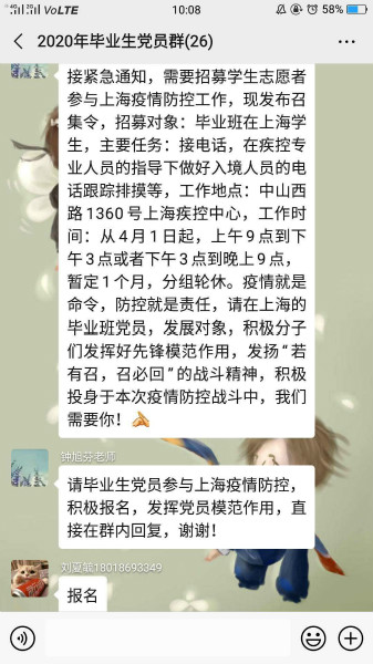图说: 上海健康医学院接到通知后在群里向学生发出邀请 郭剑烽/摄