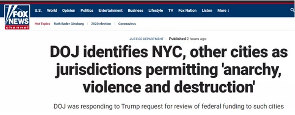 早在9月2日,美国总统特朗普就签发过一份备忘录,通过它可以明白美国联邦政府的用意。当时特朗普已经将三城称为“无政府主义管辖区”,威胁停止派遣联邦政府工作人员去当地维持秩序。如今美国司法部无非在落实特朗普的这份备忘录罢了。