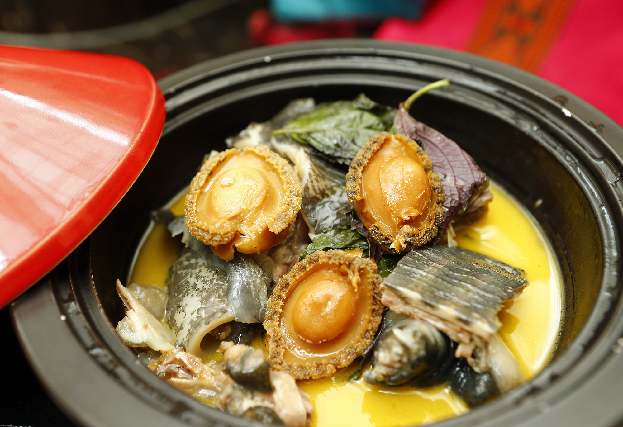 鲍鱼营养丰富,秋冬季节食用最适合进补。甲鱼不仅是餐桌上的美味佳肴,上等筵席的优质材料,同样具有诸多滋补药用功效。紫苏叶长相诱人,食用过程中可以与其他食材搭配下口,既为食材增色,又升华了食物的营养,紫苏搭配鲍鱼和甲鱼一同食用别有一番风味。