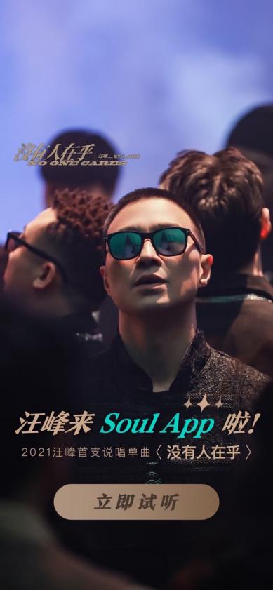 1月31日,内地著名摇滚歌手汪峰携全新说唱单曲《没有人在乎》空降Soul App, 并和1亿Soul 用户分享其真实的经历与思考,与Z世代年轻人一起无惧外界压力,真实表达自我。