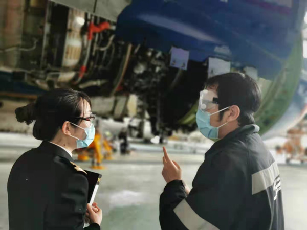 图说:浦东机场海关派员了解企业疫情期间保税维修业务情况 刘甜/摄(下同)