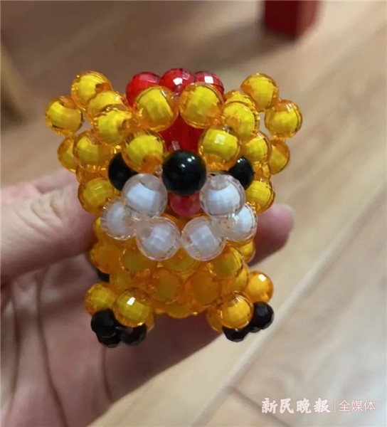 “这个送你们。”采访结束时,作为“娘家人”,记者收到了郭奶奶的礼物,珠子串的老虎活灵活现,尾巴一抖一抖,十分可爱。“我常让它们一个个在桌上排好队,晚上躺好盖被子睡觉,早上叫它们起床,跟自己的孩子一样。”