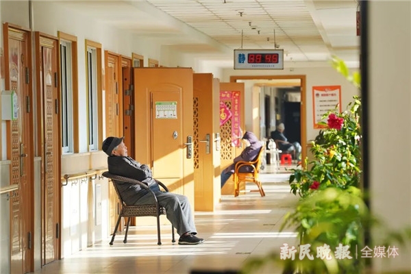 说起来这里的原因,高彩英指了指正在屋外走廊上晒着太阳听收音机的老伴说:“2017年,老头子摔了一跤,上海医院住不进去,听说这里有护理院,就来了。结果住了三个月的护理院,正好C区开放,我们就直接搬了过来。”