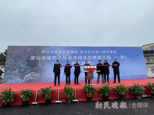 新民晚报讯(记者 毛丽君)初春的淀山湖畔寒意未消,“生态绿色保卫战”已打响。今天上午,淀山湖堤防达标和岸线生态修复工程(一期)正式动工,《长三角生态绿色一体化发展示范区建设水务(利)领域2022年行动计划》同时发布,10项重点任务明确了今年示范区水域深化攻坚的方向。