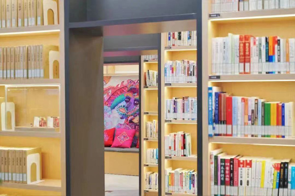 走进康乐书院(图书馆),一个安静的文艺空间映入眼帘。暖黄又明亮的灯光,配以纵深镂空的书架设计,清新的绿植点缀其间,随手一拍都能将出片效果拉满。超40000册图书,其中近9000册少儿图书、92种杂志、58种报纸,新馆还特别新增了500册盲文书和大字书……错落有致地陈列在一排排书架上,更有一个个透明展柜及彩色墙绘穿插其中,展示着来自云南石屏花腰彝的非遗文创产品,在品味书香之外还可以欣赏艺术魅力,扫一扫展品介绍标签上的二维码,进入云南石屏花腰彝刺绣微店,直接购买展品。