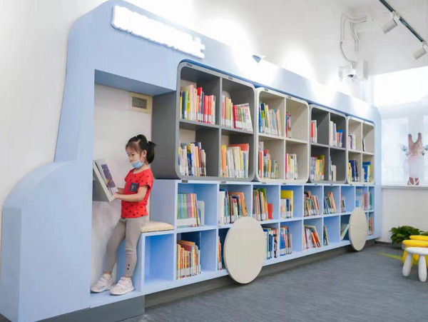 作为“康健悦读巴士”主题活动的其中一站,图书馆设有儿童阅览区,色彩明亮配以许多可爱的卡通装饰,让小朋友置身充满童趣的氛围之中,不知不觉沉浸于知识的海洋。贴心的年龄分区、窗台座位设置,以及一台适合孩子们高度的自助图书借还机,都充分调动了孩子们的自主性与积极性,培养他们良好的阅读习惯。更难能可贵的是,这里还特别设置了盲文书籍与大字书籍专区,查阅信息的电脑也配备特殊的大字键盘,满足不同读者的需求。
