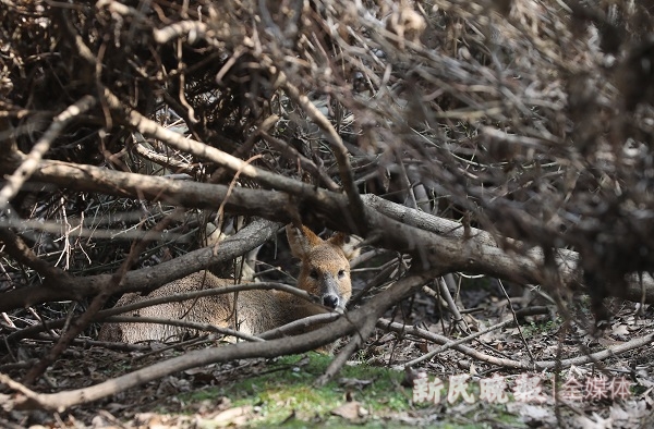 上午,记者在基地的林间走了20分钟,就看到好几头胆小的獐。工作人员介绍,獐极为敏感,喜欢避开人活动。果然,有的獐躲在树丛中远远地观察人类,有的獐在林间飞速跳跃,极快地从大家面前闪过。每次獐一露面,都引起参观者的轻呼,但大家都压低声音,生怕惊扰到它们。
