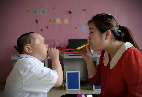 图说:吴老师用游戏启智特殊孩子 采访对象提供(下同)