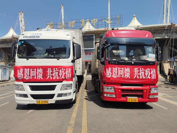 新民晚报讯 (记者 王蔚)西兰花、娃娃菜,这些普通的蔬菜,昨天成了华东师范大学师生们餐盘里最珍贵的菜肴。因为,这些蔬菜是云南省昆明市寻甸回族彝族自治县人民开着卡车,翻山越岭送到学校的。车头横幅上“感恩回馈,共同抗疫”几个大字特别暖人心。