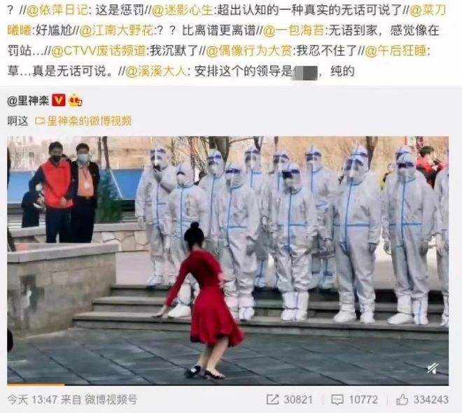 “听我说”这三个字就决定了,其出发点是为了“我”情感上的表达,而不是你情感上的接受。“听我说谢谢你”的背后意味,或许是,我要说话了,你就得接受我的要求——流传出的视频,也侧面印证了这一点:“大白们”都板正地站着,接受表演者的表演。难怪网友如此评论:这是“测完核酸加钟罚站”。