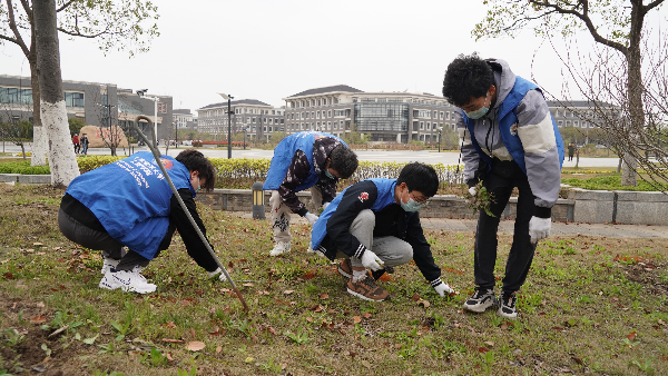 清洁校园的打扫中,参加的老师不时向同学们介绍马兰头、荠菜等,教大家辨认野菜。有的学生是路过看到,被热火朝天的场面所吸引来,也自行加入进来。外国语学院叶宇琦认识了好几种不知名的野草,他开心地说:“虽然疫情阻止了我们走出校园,但在校园劳动中享受海风拂面,迎来春暖花开,同时还能在劳动中增加见识、增长才干,这就是我所向往的生活啊。”