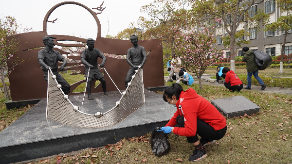 连日来,全校近800名师生,在自己的“包干区”,共同进行着这门举校参加的全员“劳动教育”课。学生们在学生宿舍、学院楼宇、公共区域等三个地方集中开展卫生清扫活动——宿舍内、道路旁、景观带、教学楼,学生忙碌的身影随处可见;剪除杂草、捡拾垃圾、擦拭雕塑、整理桌凳,学生身体力行,一丝不苟。