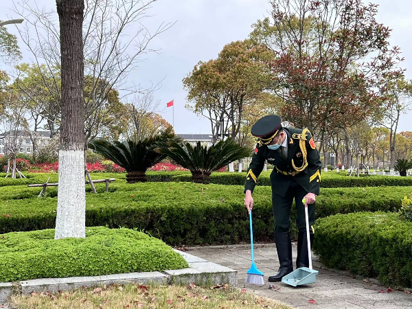 《海权石》雕塑前,是校友王器民、张文祥、于以振、瞿桂华四位烈士的祭扫点。他们有的牺牲在革命年代,有的在新中国的社会主义建设中献身。退役大学生士兵代表认真打扫了祭扫点周边,他们身着礼服参加祭扫,用军人最高的礼遇致敬烈士。上海海洋大学八一社社长、2019级食品质量与安全专业学生陈志锦说:“我们要让烈士们看到新时代参军入伍、投身国防的海大人的青春风采,让他们看到新时代的海大人没有辜负他们作出的牺牲,也扛得起新一代中国青年肩上的责任,我们会用实际行动来告慰他们的英灵。”