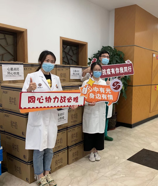昨天,第二批采购的1925箱纯牛奶经过多方协调后,也第一时间送达岳阳医院、曙光医院、瑞金医院、长征医院和仁济医院。仁济医院工作人员在收到300箱纯牛奶后,激动地表示,这是他们在2020年武汉抗疫行动中收到防护服后,第二次收到“心星点灯”公益小组的爱心。少年有担当,山河心中装,他们祝孩子们前途灿烂。