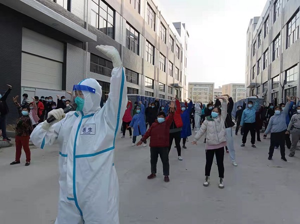 夜幕降临,医疗队视频连线上海市中医医院针推康临床医学中心王桂茂副主任医师,开展主题为“缓解焦虑,固肺强体”的健康“云科普”,在线讲解如何通过自我保健按摩的方式舒缓焦虑情绪,介绍与固肺健体、促进康复相适应的少林内功、太极等特异性功法锻炼处方。李女士跟随医生的讲解按压穴位、敲打经络,她说:“中医传统疗法很简便,特别适合我们老百姓。”