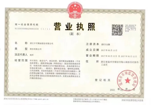 有居民反映,新江湾城街道发放的食用油存在质量问题。经区市场监管部门对实物和企业营业执照、食品生产许可证等相关资质的核查,主食包内“锐宝丰”鲜胚玉米油(非转基因)生产商为浙江中可粮油股份有限公司,具备食用油、油脂及其制品食品生产许可,注册资本1000万元。