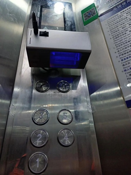 图说:电梯消毒灯、电梯按钮消毒灯安装在综合楼电梯 采访对象供图(下同)