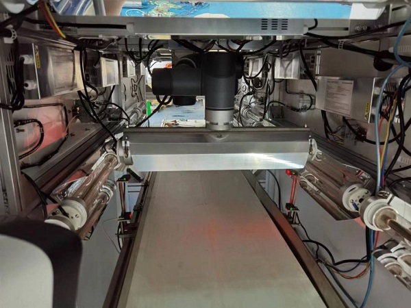 图说:滚轴式六面均匀紫外线物表消杀机在枫林校区消杀物资