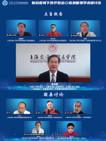 日前,由上海交通大学中国医院发展研究院主办的“新冠疫情下医疗救治及应急管理学术研讨会”在线上成功举行,交大医学院各家附属医院的专家和全国各地同行相聚云端,共同探讨新冠疫情期间的医疗救治与应急管理。