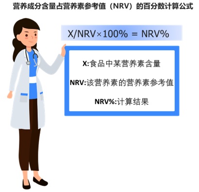 营养素参考值百分比(NRV%)可以直观地表示100克(或100毫升)或一份食物所含的某种营养成分,占人体一天需求量的百分比。